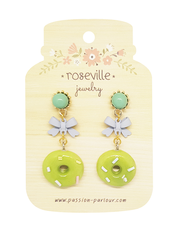 ต่างหู ตกแต่งด้วยโดนัทและโบว์สีสดใส