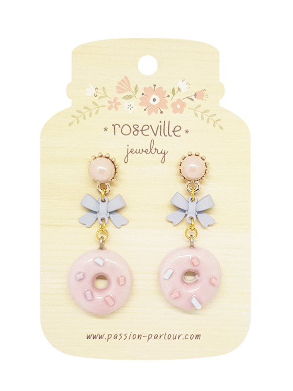 ต่างหู ตกแต่งด้วยโดนัทและโบว์สีสดใส